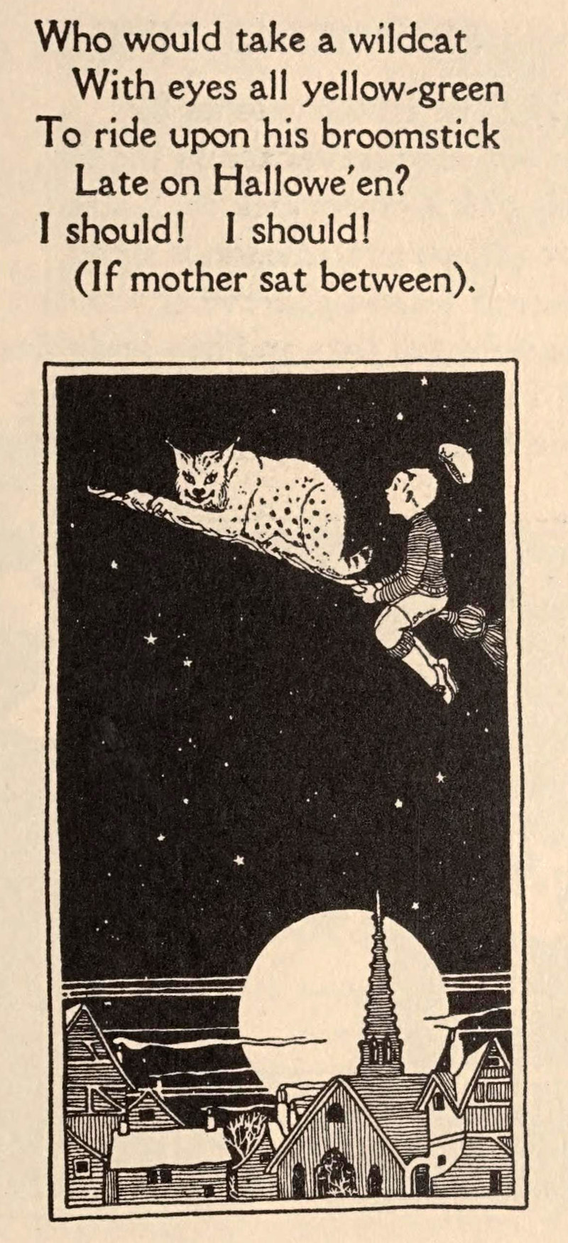 #vintage illustration #hallowe'en #flying broom #wildcat #poem #flying broomstick