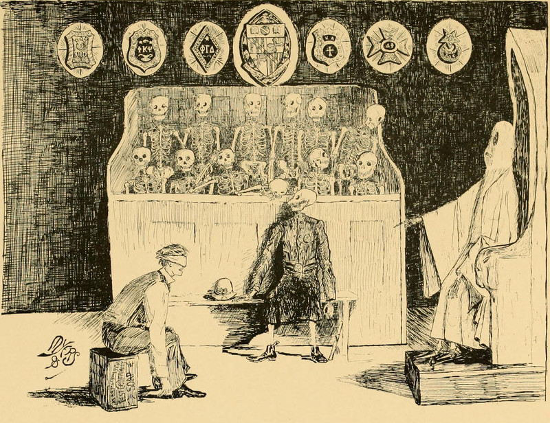 #vintage illustration #skeleton #vintage yearbook #initiation #secret society
