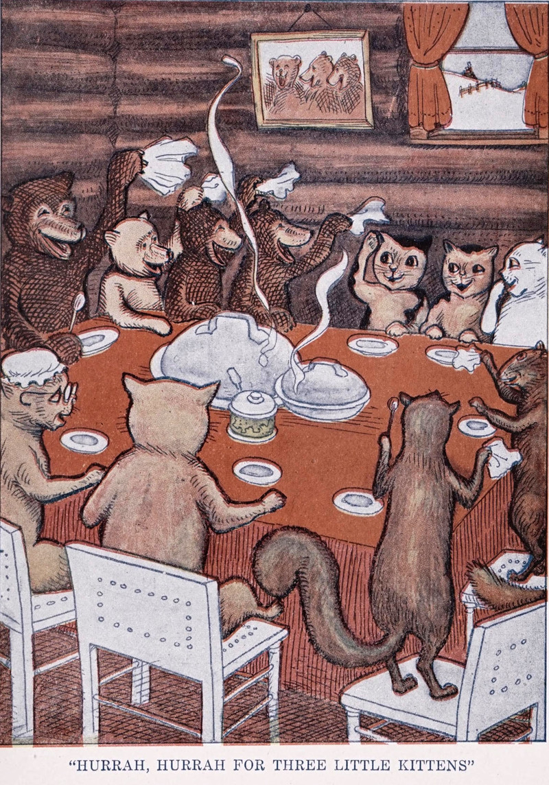 From Three Little Kittens Who Lost Their Mittens by Laura Rountree Smith and illustrated by F. R. Morgan, 1919.