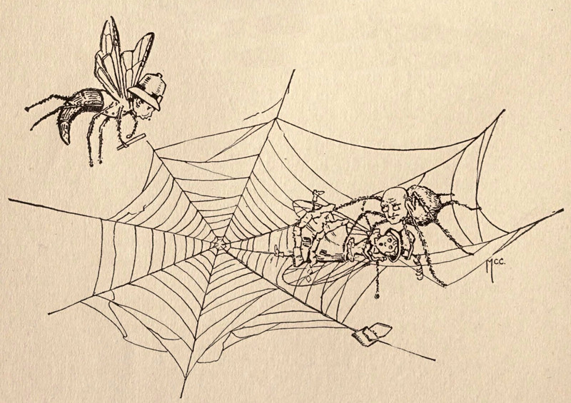 #vintage illustration #anthropomorphism #spider #spider web #illustration #wasp