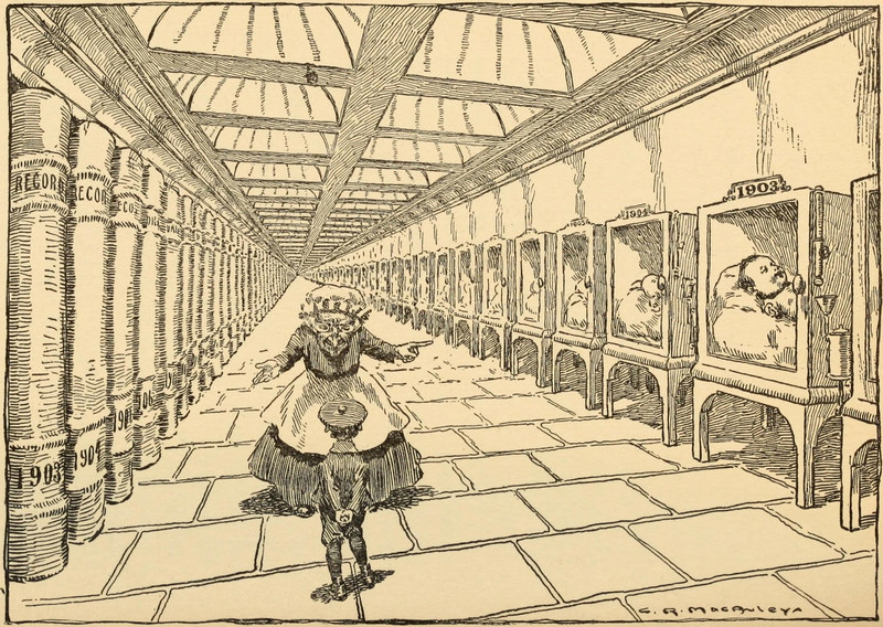 This is where Baby New Years are incubated.  From Emblemland by John Kendrick Bangs and Charles Raymond Macauley, 1902.