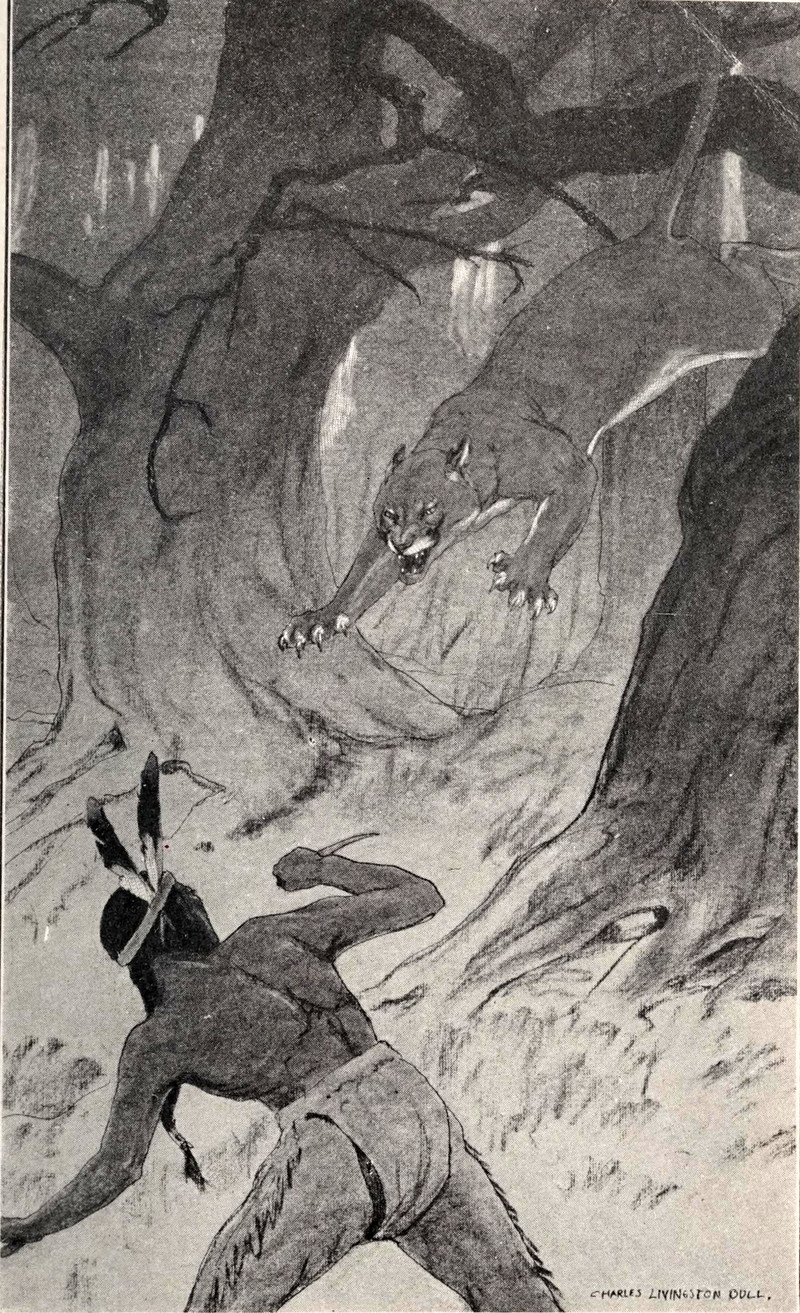 #vintage illustration #animal attack #native american #cougar