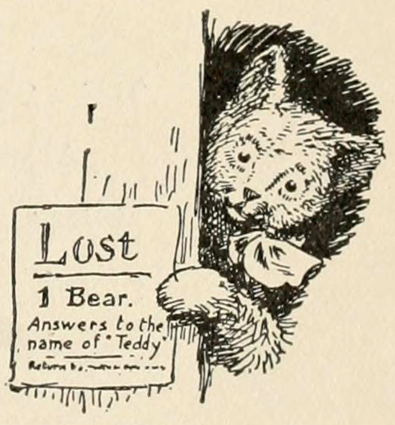 That feeling when you post your own "Lost" notice.  "Lost -- 1 bear.  Answers to the name of 'Teddy.'"  From King Time by Percy Keese Fitzhugh, 1908.
