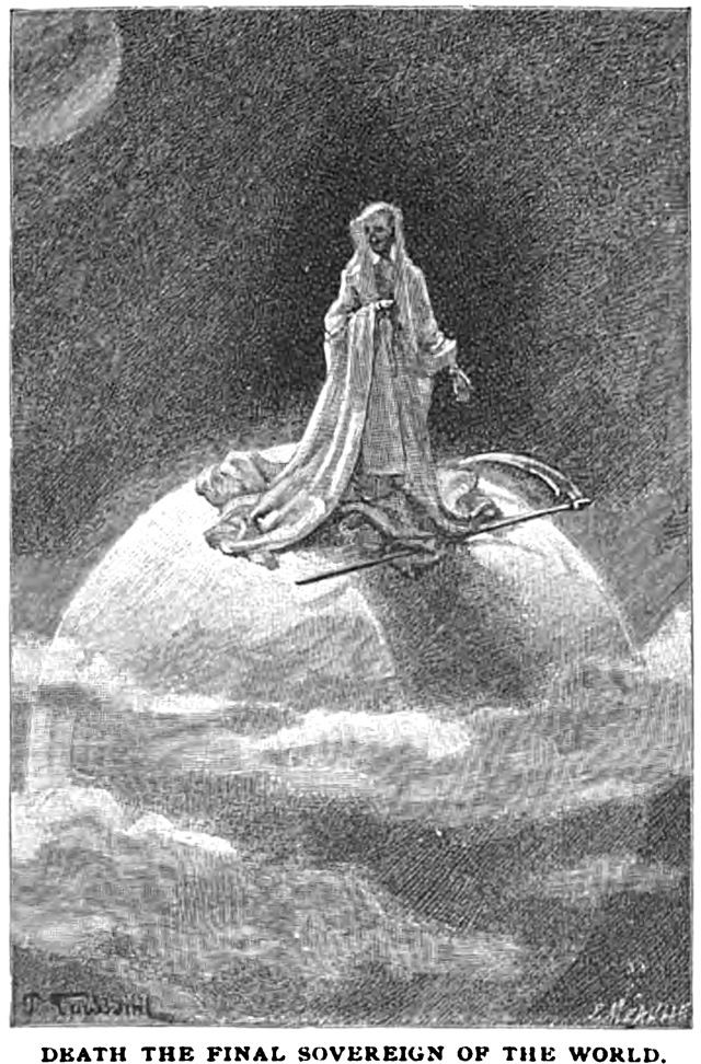 An illustration from an 1893 issue of Cosmopolitan magazine. The caption reads: "Death the final sovereign of the world."