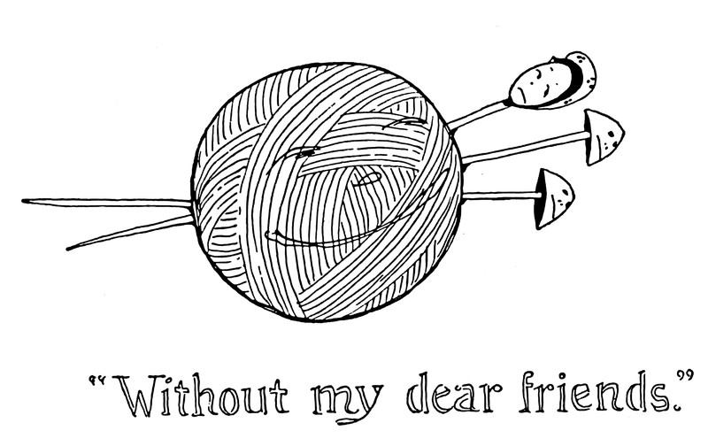 #vintage illustration #anthropomorphism #faces in things #1910s #yarn ball #knitting needle
