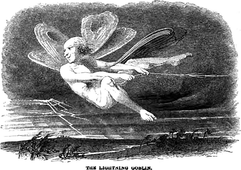 An illustration from an 1861 issue of Harper's magazine. The caption reads: "The lightning goblin."