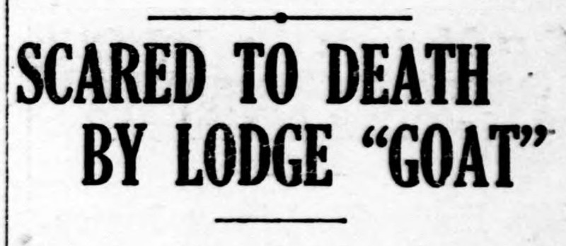 "Scared to death by lodge 'goat.'"  From the Duluth Evening Herald, 1909.