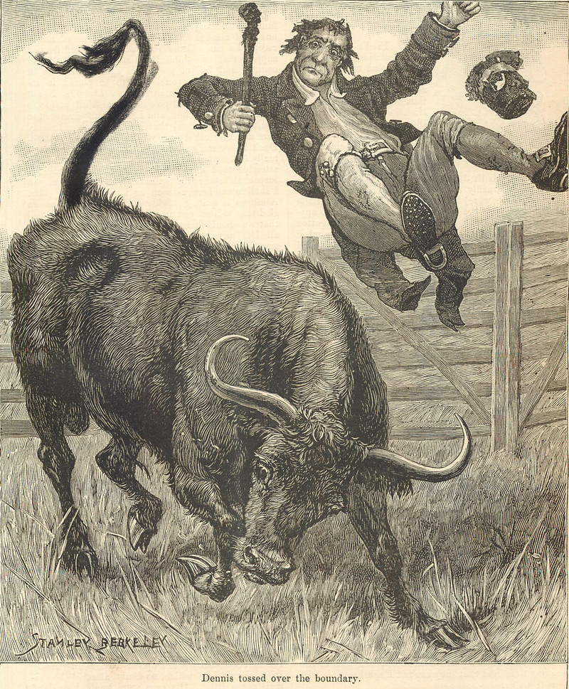 "Tossed over the boundary."  From Chatterbox, 1892.
