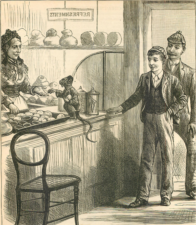 Rare for a monkey to pay for its pastry, and even rarer for a monkey to leave a tip.  From Chatterbox, 1892.
