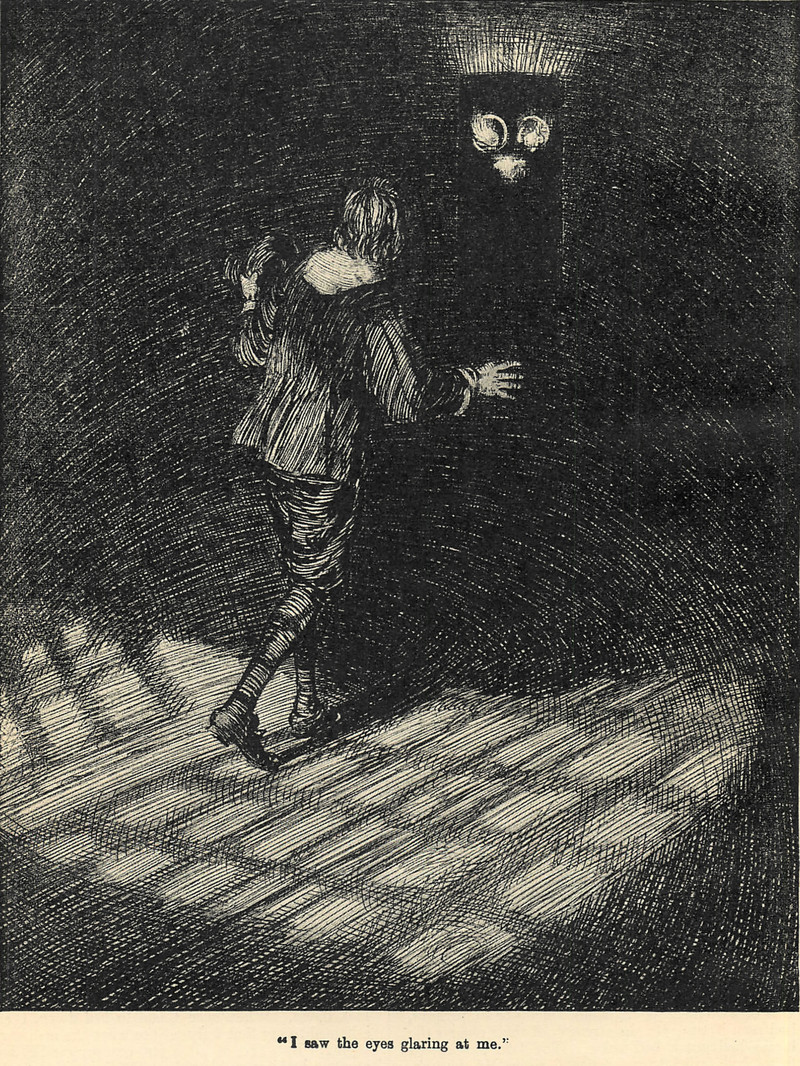 "I saw the eyes glaring at me."  From Chatterbox, 1909.