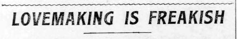 "Lovemaking is freakish."  From the Duluth Evening Herald, 1908.