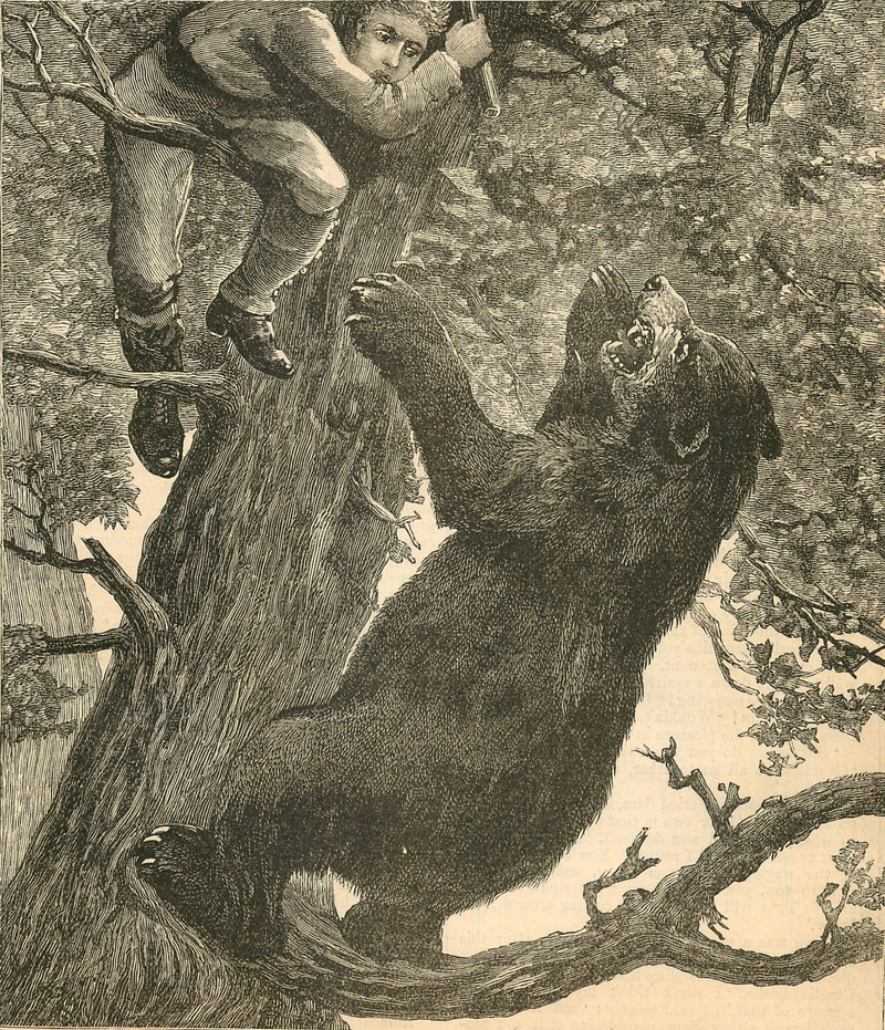#vintage illustration #animal attack #bear #illustration #up a tree