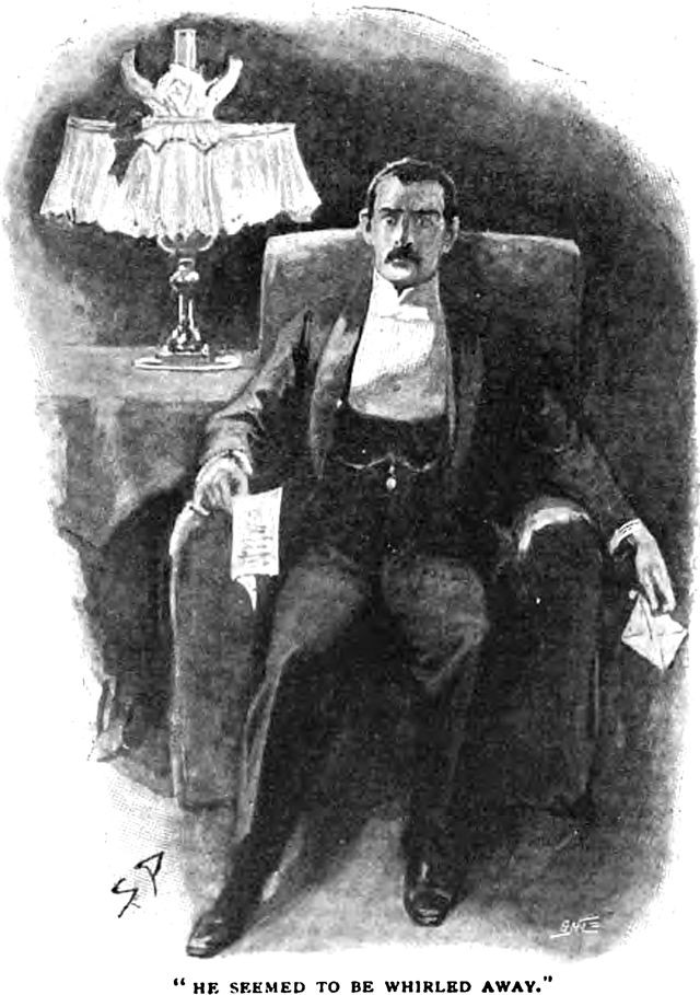 An illustration from a 1900 issue of The Strand magazine. The caption reads: "He seemed to be whirled away."