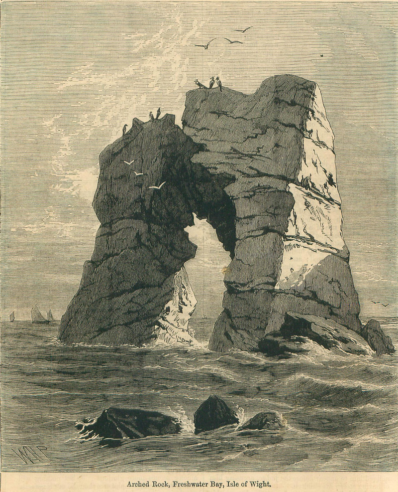 Arched Rock, Freshwater Bay, Isle of Wight.  From Chatterbox, 1875.