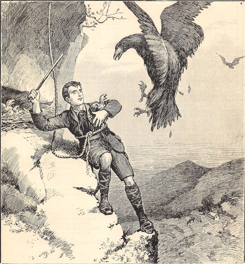 #vintage illustration #eagle #nest #animal attack #mountain climber #1900s