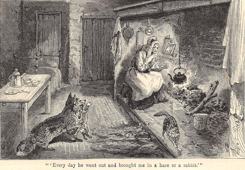 "Every day he went out and brought me in a hare or a rabbit."  From Chatterbox, 1905.