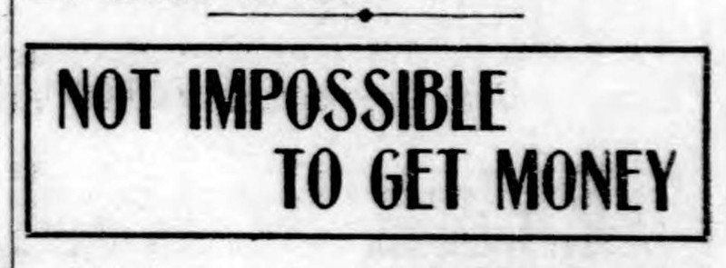 Great news: "Not impossible to get money."  From the Duluth Evening Herald, 1914.