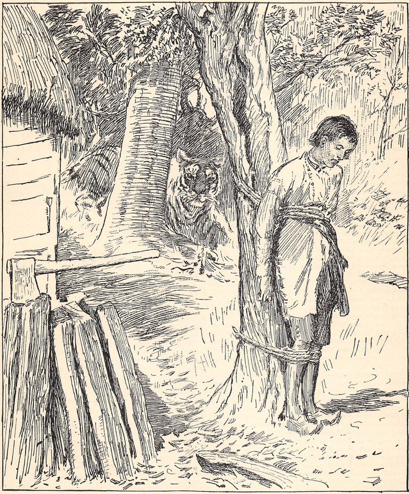 #vintage illustration #tiger #tied to a tree
