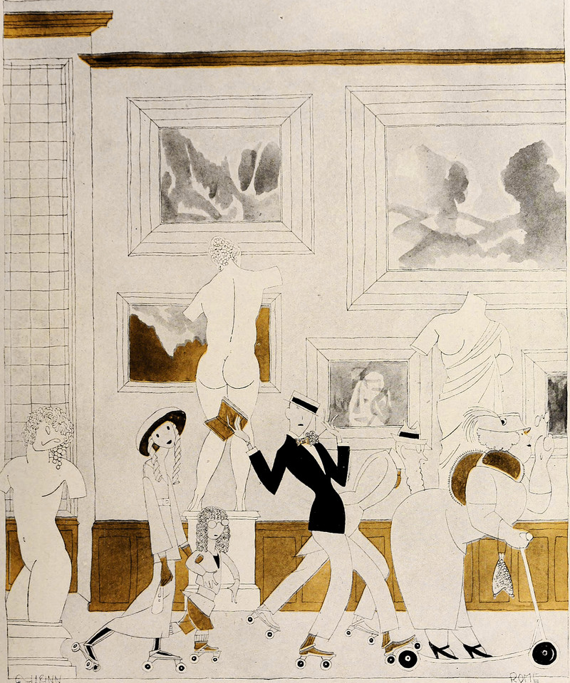 Skating through the museum.  From Shadowland, 1923.