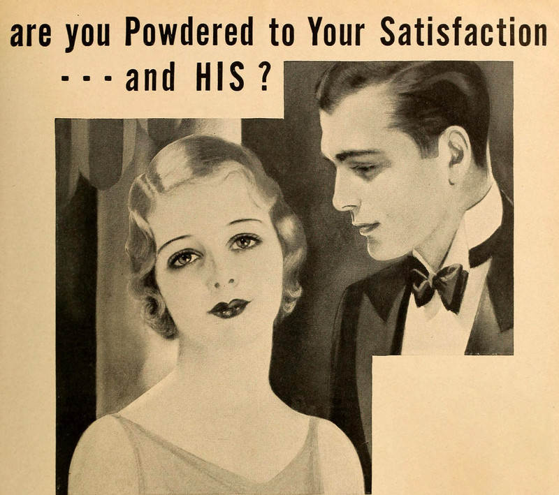 A question so few ask anymore: "Are you powdered to your satisfaction ... and his?"  From Movie Classic, 1933.
