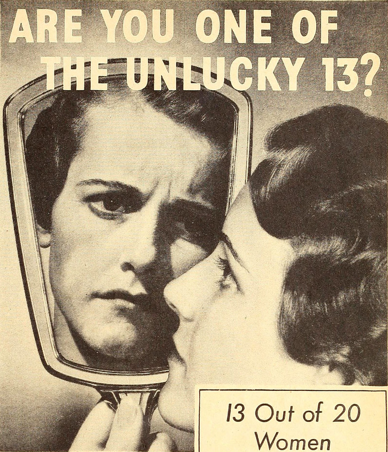 #vintage ad #mirror #1930s #unlucky #13 #bad luck #woman #vintage woman #ad