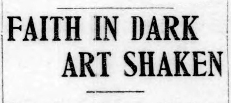 "Faith in dark art shaken."  From the Duluth Evening Herald, 1903.