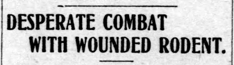 "Desperate combat with wounded rodent."  From the Duluth Evening Herald, 1906.