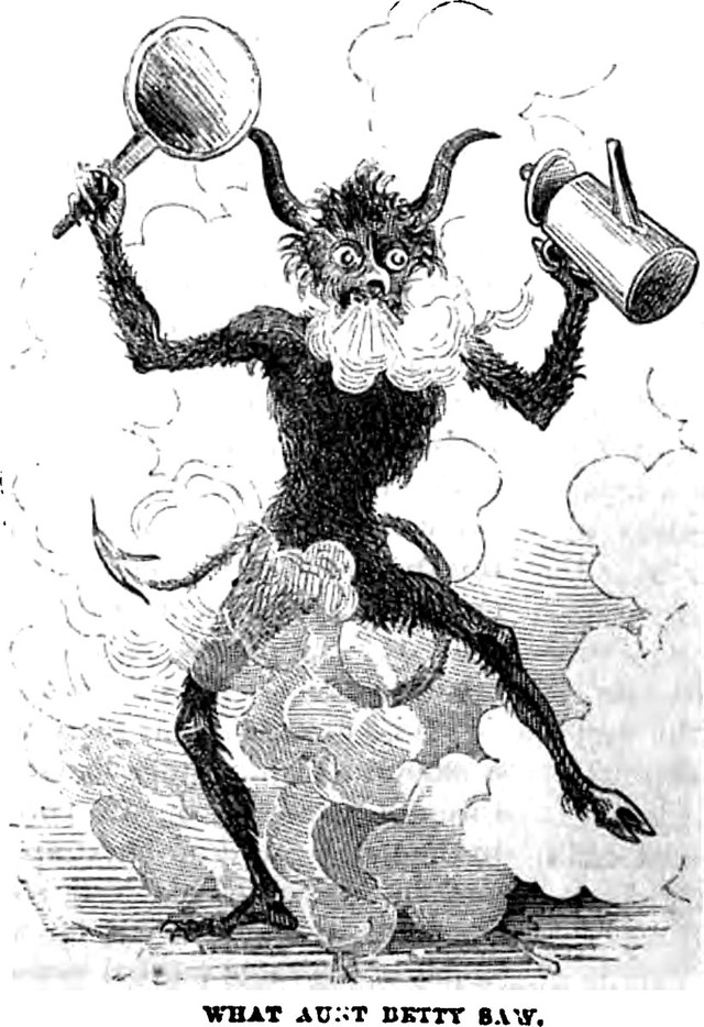 An illustration from an 1858 issue of Harper's magazine. The caption reads: "What Aunt Betty saw."