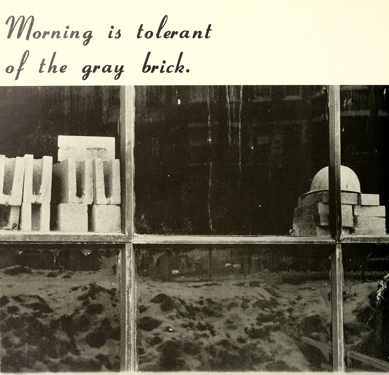"Morning is tolerant of the gray brick."  From Northeastern University's 1967 yearbook.