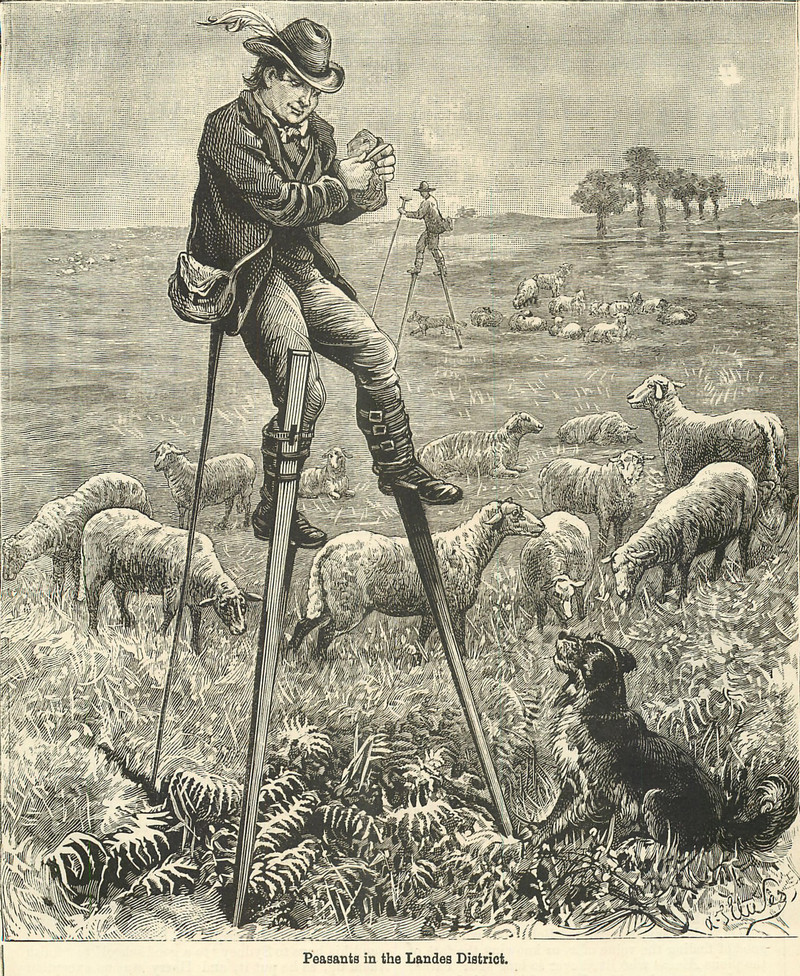#vintage illustration #stilts #shepherd #sheep