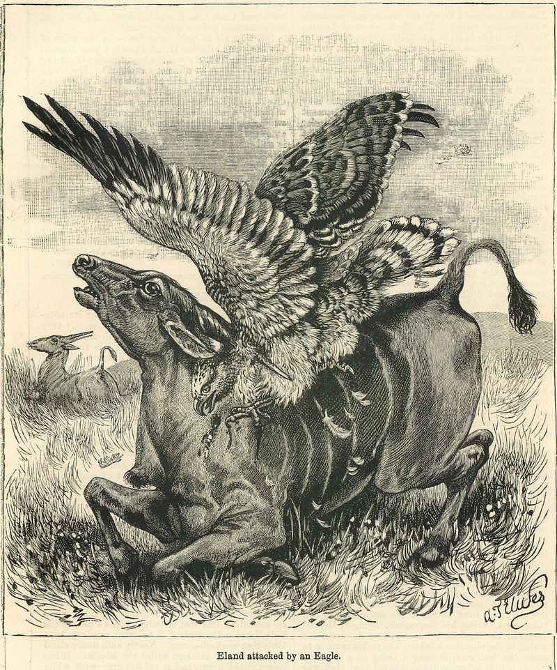 #vintage illustration #eagle #1890s #animal fight #antelope #eland