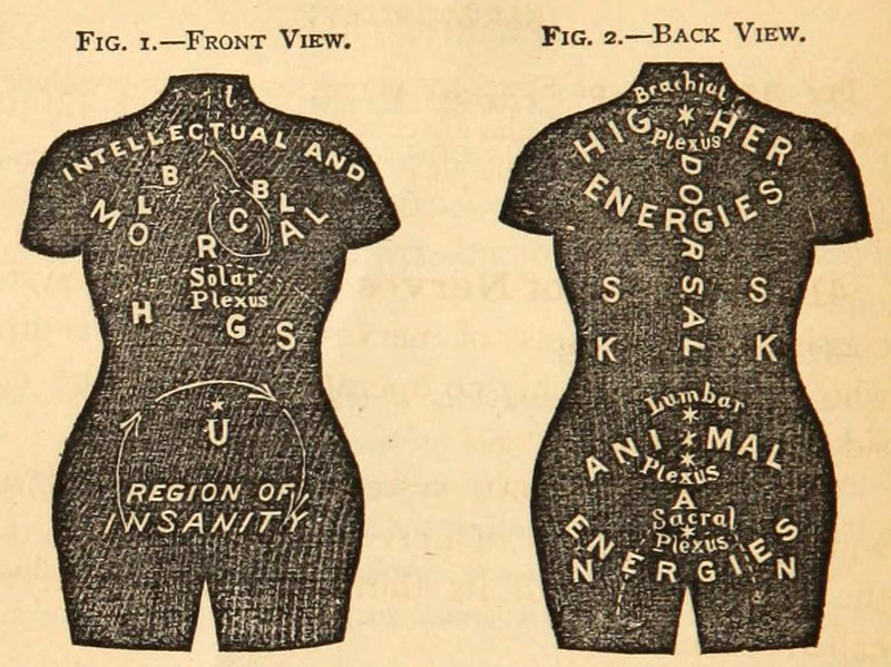 From The Health Guide: Aiming At a Higher Science of Life and the Life-forces, Giving Nature's Simple and Beautiful Laws of Cure, the Science of Magnetic Manipulation, Bathing, Electricity, Food, Sleep, Exercise, Marriage, and the Treatment for One Hundred Diseases: Thus, Constituting a Home Doctor Far Superior to Drugs by Edwin Babbit, 1874.