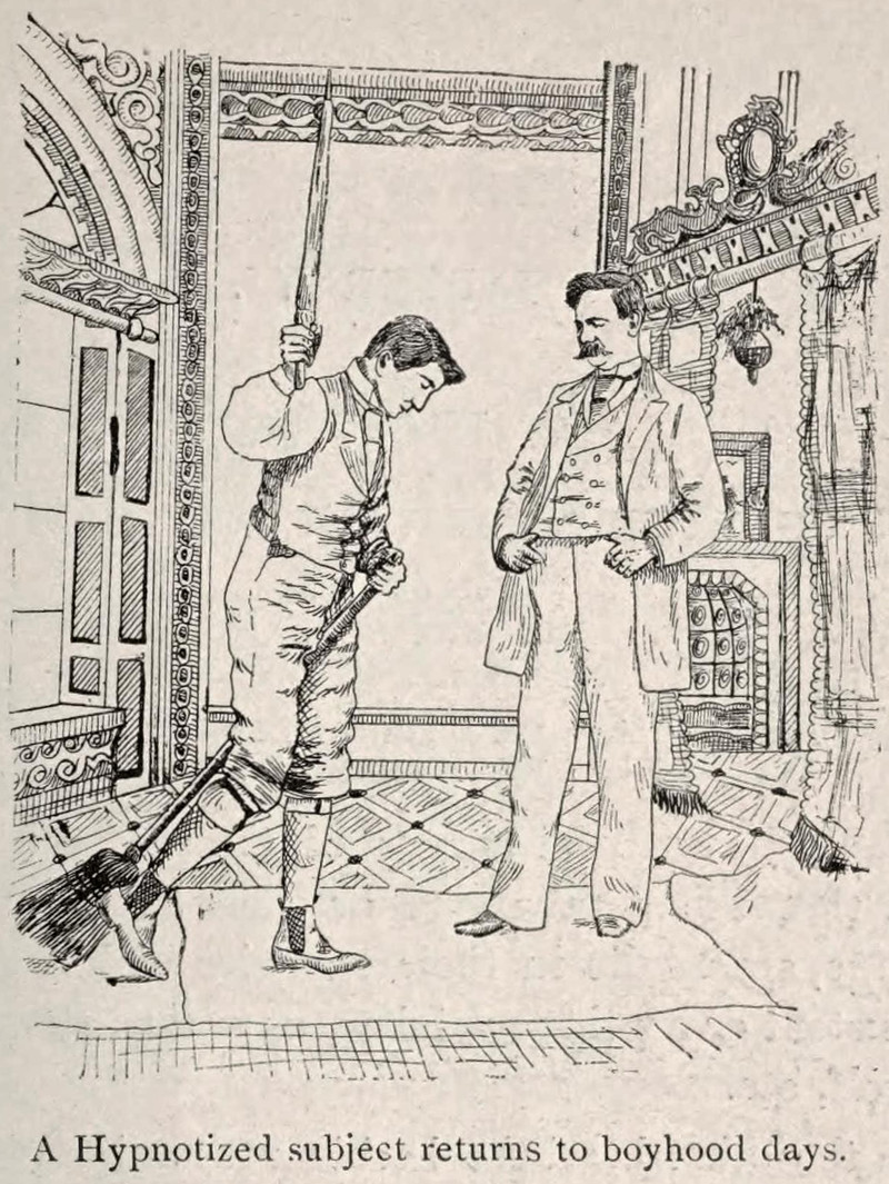 Hypnotized back to his boyhood days.  From How to Win by L. H. Anderson, 1893.