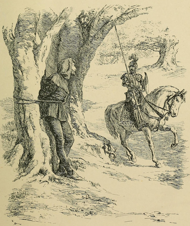 #vintage illustration #knight #tied to a tree