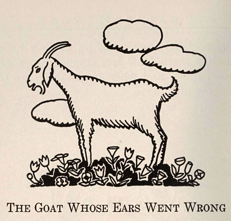 "The goat whose ears went wrong."  From The Crystal Locket by Nellie M. Rowe and illustrated by Elizabeth Enright, 1935.