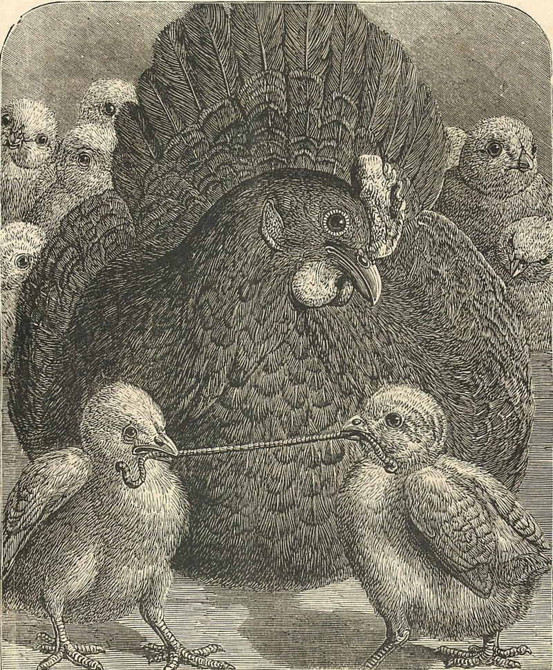 #vintage illustration #chicken #tug of war #hen #chicks #worn