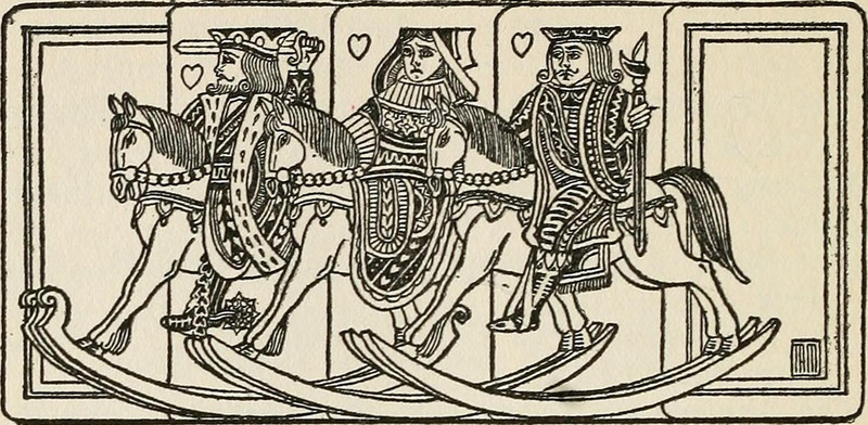 Today's playing card royalty riding rocking horses are from The Book of Hobbies; or, A Guide to Happiness by Charles Taussig and Theodore Meyer, 1924.