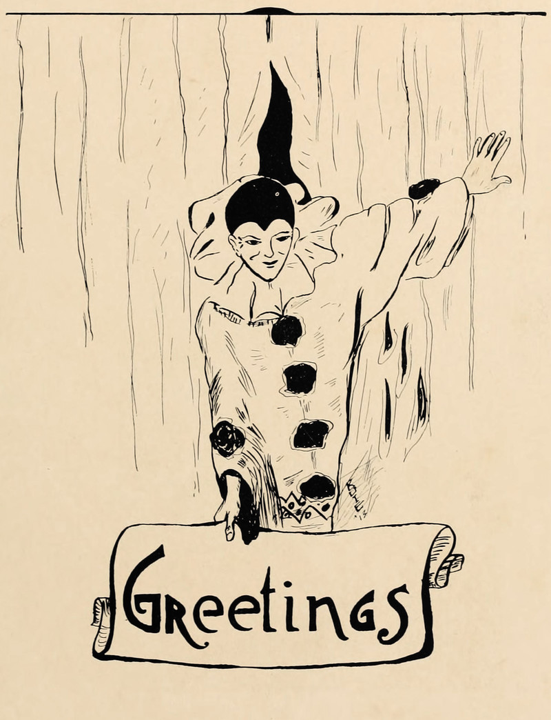 #vintage illustration #clown #vintage yearbook #yearbook #greetings