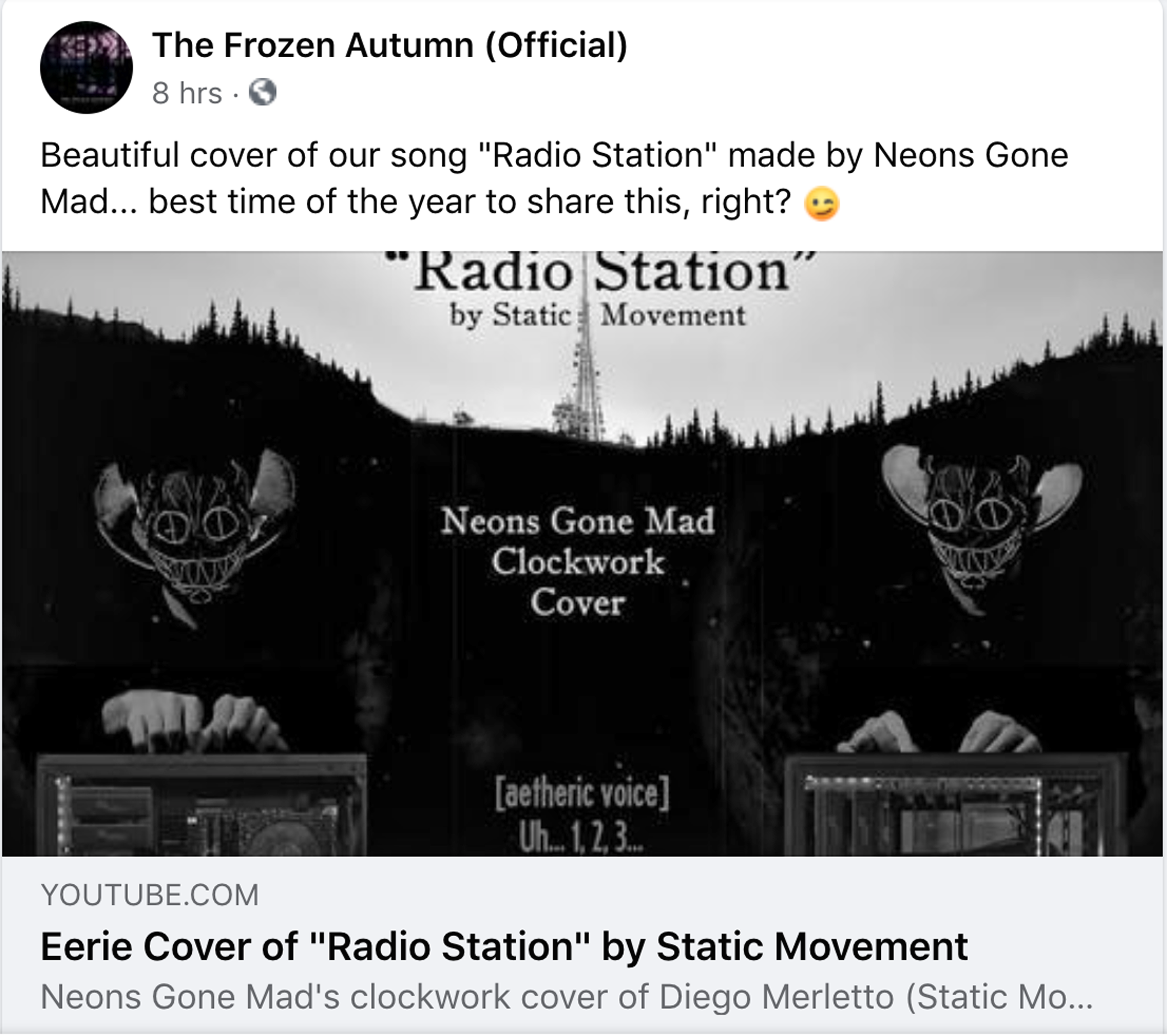 Thanks to The Frozen Autumn (and side project Static Movement) for promoting our haunted clockwork cover of their haunting song "Radio Station."