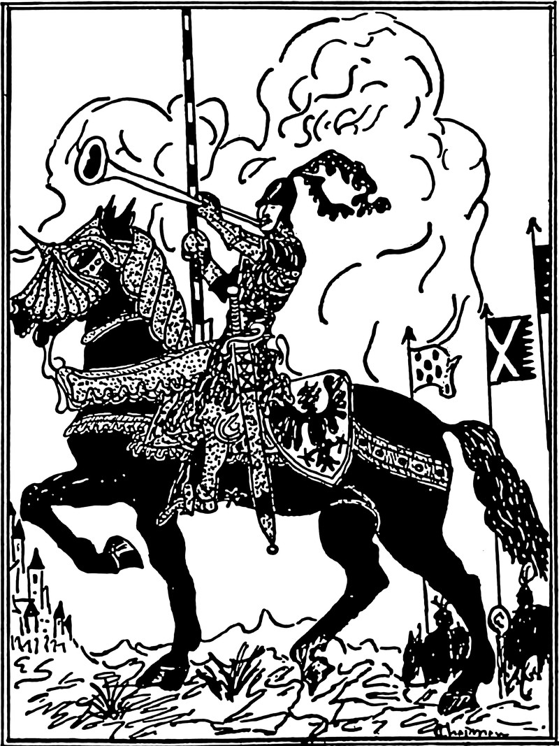 #vintage illustration #horse #knight #vintage yearbook #yearbook #trumpet