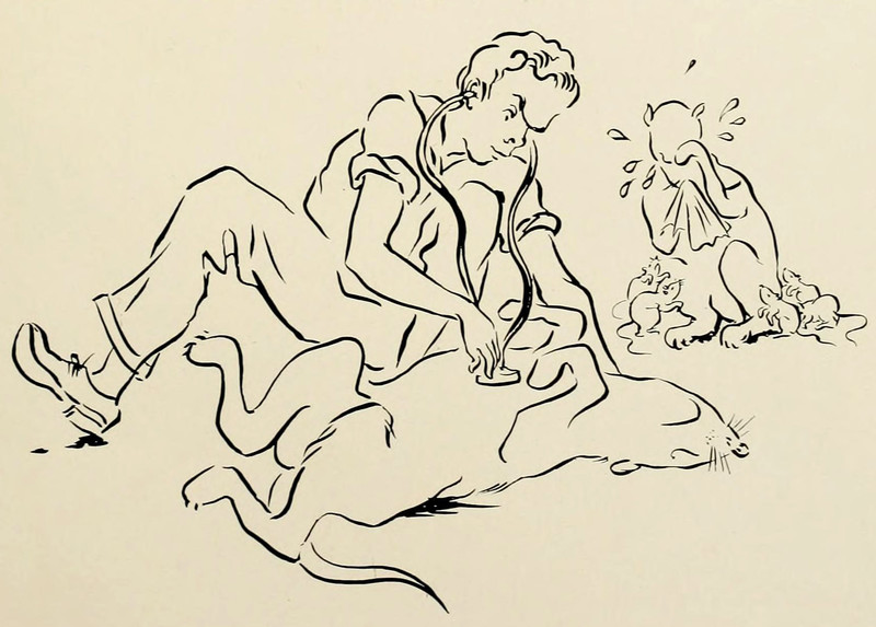 #vintage illustration #vintage yearbook #yearbook #veterinarian #crying animal #1940s #illustration