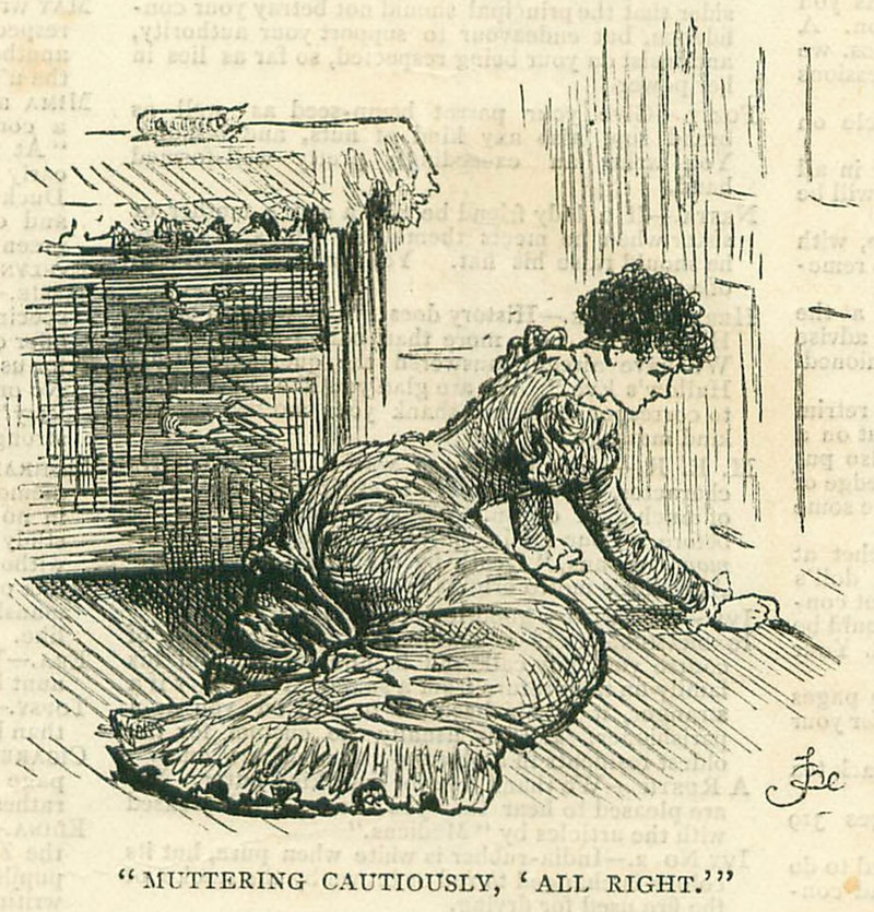 "Muttering cautiously, 'All right.'"  From The Girl's Own Paper, 1880.