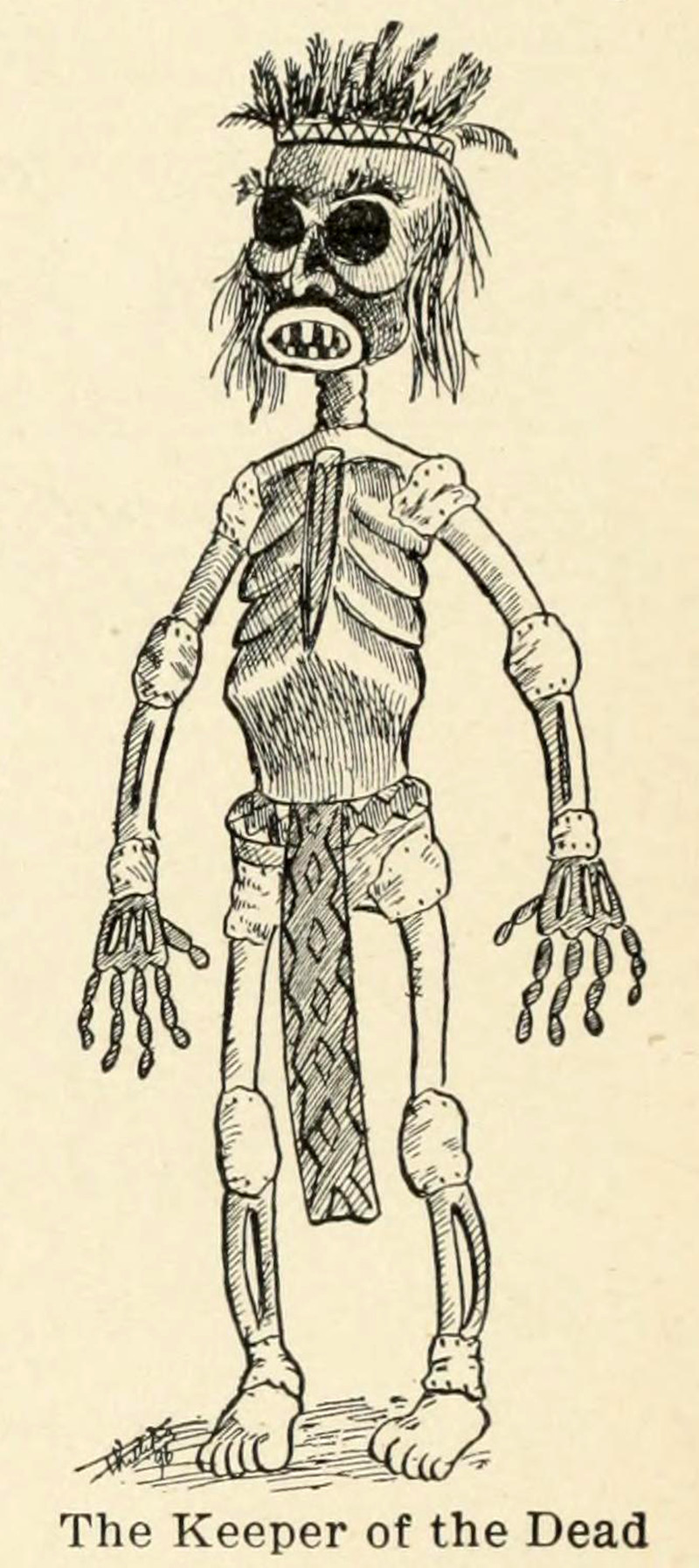 "The keeper of the dead."  From Totem Tales: Indian Stories Indian Told, Gathered In the Pacific Northwest by W. S. Phillips, 1896.