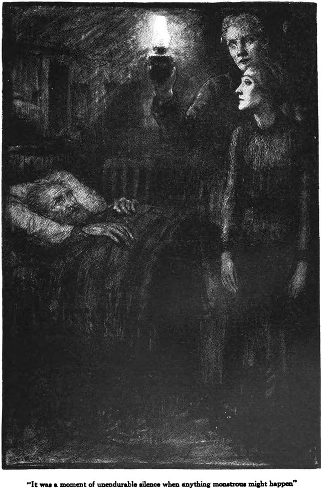 An illustration from a 1922 issue of Century Illustrated magazine. The caption reads: "It was a moment of unendurable silence when anything monstrous might happen."