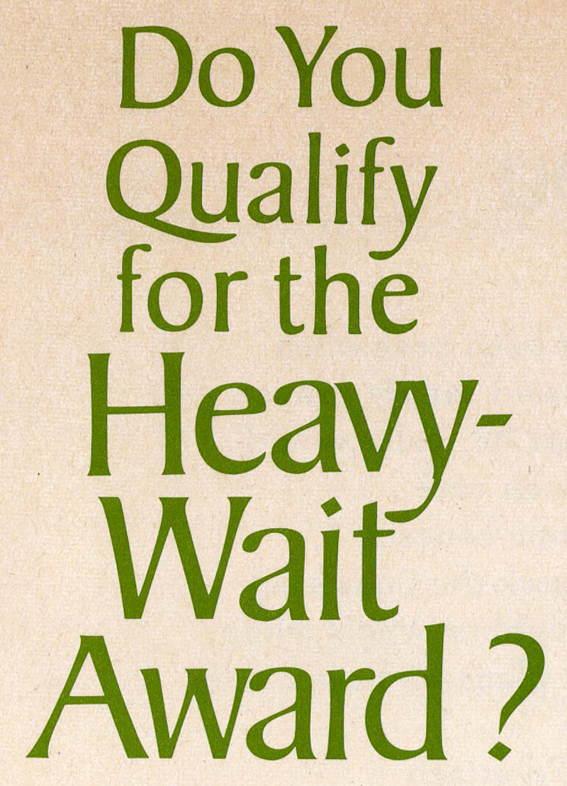 "Do you quality for the heavy-wait award?"  From The Improvement Era, 1969.