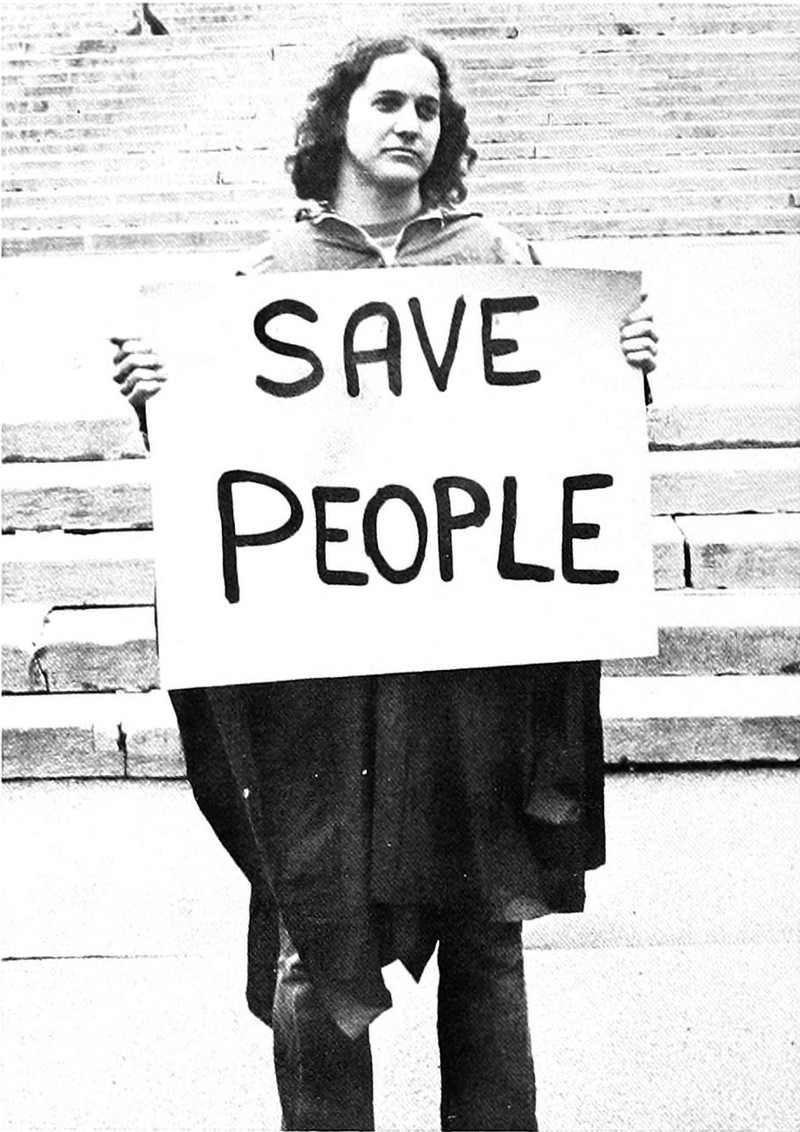 "Save people."  From Earlham College's 1972 yearbook.