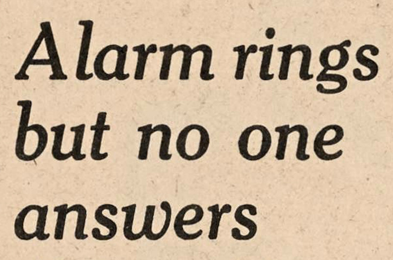 "Alarm rings but no one answers."  From The Gateway, 1965.