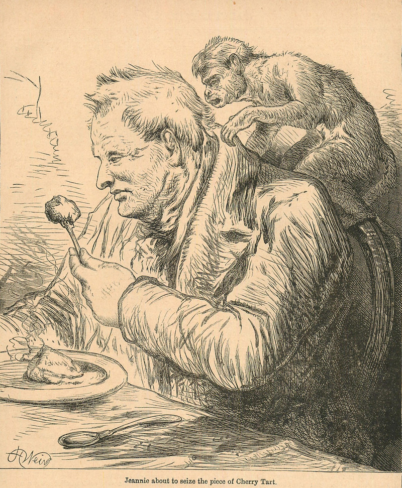 When the monkey on your back wants the cherry tart.  From Chatterbox, 1886.