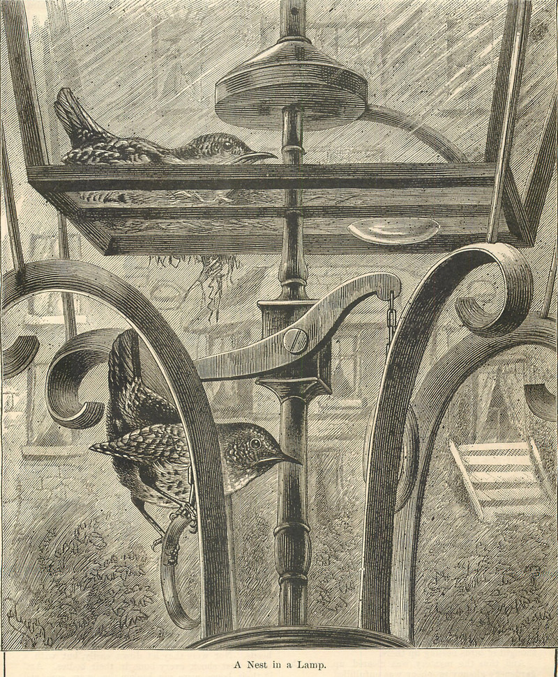 #vintage illustration #nest #bird #lamp post