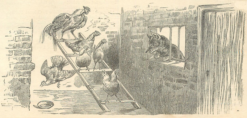 #vintage illustration #fox #chicken #henhouse